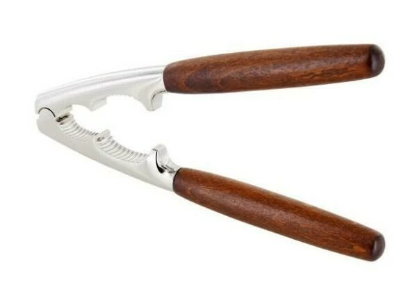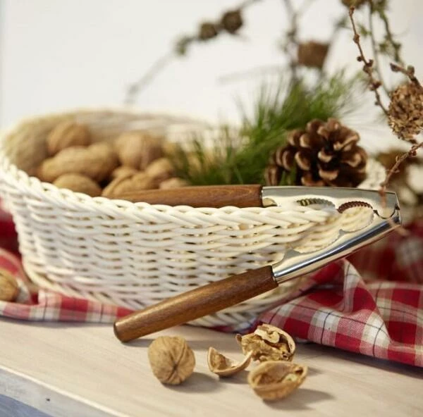 Der Nussknacker überzeugt mit warmen Holzgriffen, die einen schönen Kontrast zu dem kühlen hochglänzenden Metall bilden.