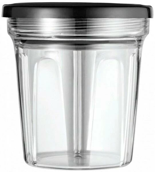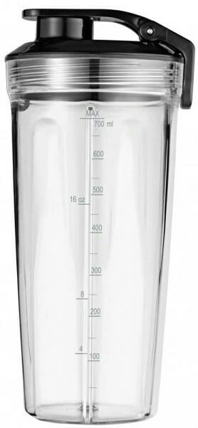 Die zwei To-Go-Mixflaschen fassen jeweils 500 ml und 700 ml, der kleine Mixbehälter fasst 300 ml und der große Mixkrug fasst insgesamt 1,2 l. Des Weiteren gibt es zwei individuell kombinierbare Messereinheiten aus hochwertigem Edelstahl (eine 6-flügige Kreuzklinge und eine Flachklinge).