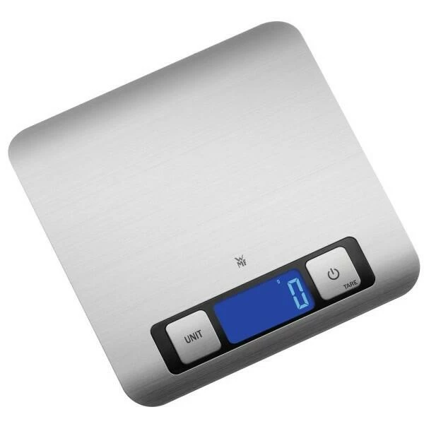 WMF Küchenwaage. Die Küchenwaage von WMF verfügt über eine edle Wiegefläche und wiegt neben diversen Lebensmitteln, auch das Volumen von Flüssigkeiten.