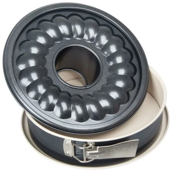 Eigenschaften der Zenker Springform Crème Noir mit Flach- und Rohrboden: